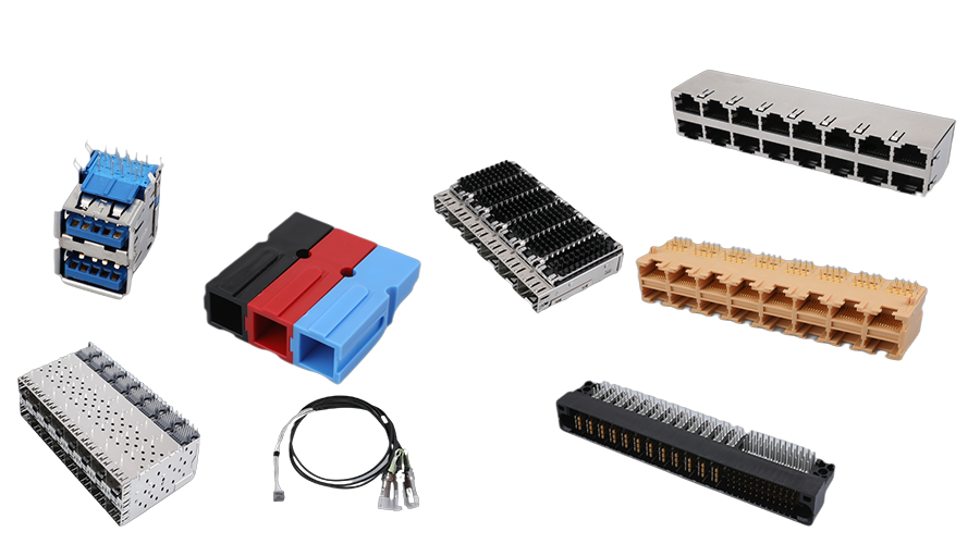 網(wǎng)絡(luò)連接器 (集成RJ45系列和普通RJ45系列)、高速連接器(SFP/QSFP/DSFP/CFP系列)、電源連接器、高速DAC和背板高速線纜組件、BTB連接器、網(wǎng)絡(luò)變壓器、RJ11連接器系列、USB&TYPE-C系列、精密五金件等。公司產(chǎn)品廣泛應(yīng)用于包括“5G/6G”在內(nèi)的網(wǎng)絡(luò)、通訊等行業(yè),并致力于滿足新能源汽車(chē)、高端裝備、智能顯示、軌道交通、機(jī)器人等高精尖終端領(lǐng)域?qū)B接器市場(chǎng)的需求。